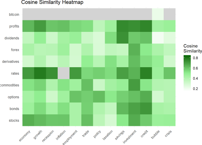 For the first step, my two vectors are self-selected finance and economics terms (some terms like ETF, hedge funds, and IPO are not to be found in this particular dictionary):