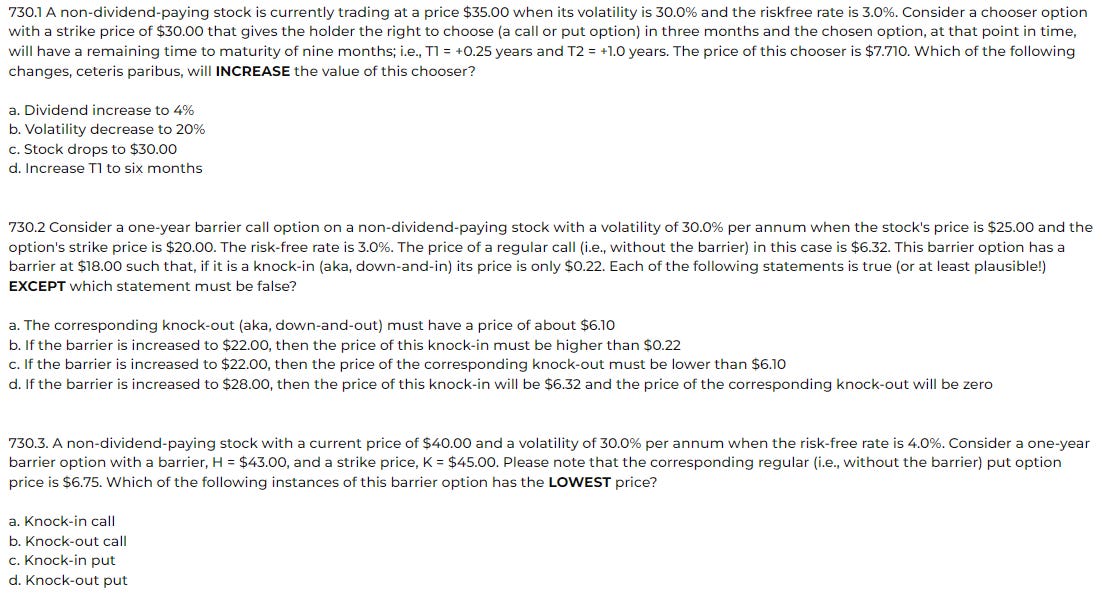 Depth #2: P1.T3.730. Chooser and barrier (exotic) options (Chapter 26 cont.)